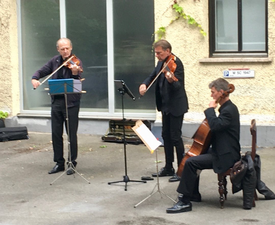 Am 29. Mai 2020 fand im Hinterhof der Baaderstrasse 13 ein von Peter Strauß organisiertes Konzert dreier Mitglieder des "Symphonieorchesters des Bayerischen Rundfunks" mit einem Spenden-Aufruf für die "Jazzbar Vogler Solidargemeinschaft" statt:
